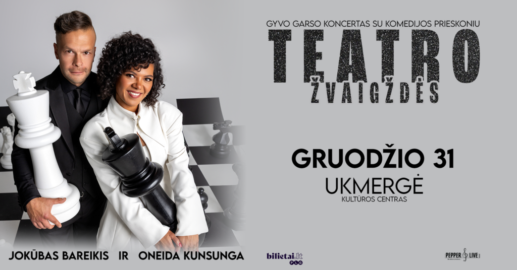 „Teatro Žvaigždės“ — gyvo garso koncertas su komedijos prieskoniu, kuriame aktoriai Jokūbas Bareikis ir Oneida Kunsunga kartu su profesionalia muzikantų grupe atgaivins gražiausius teatro, kino ir bardų kūrinius. Tai šilti, nuoširdūs ir kartu linksmi pasirodymai: dainos, užkulisinės istorijos, teatriniai etiudai, improvizacijos ir interaktyvūs momentai su žiūrovais, kurių dėka kiekvienas vakaras tampa unikalus. Speciali scenografija ir šviesų dizainas kurs šventišką žiemos švenčių nuotaiką — idealų gruodžio koncertų turui.