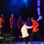 Jonavos Janinos Miščiukaitės meno mokyklos mokomojo teatro režisierė Živilė Martinaitienė pastatė kostiuminį spektaklį,kuriame jaunieji aktoriai žaidžia comedia d’el arte. Tai spektaklis pagal K. Goldono pjesę „Triufaldino arba dviejų ponų tarnas“. Jaunieji aktoriai pabandė suvokti neįprasto žanro vaidybos taisykles ir jį žaisti.