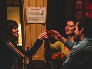 Vienas pokštas veda prie kito, kokteilių daugėja ir, barui užsidarius, net patys dorai nesupratę, kaip taip nutiko, visi trys atsiduria vienoje lovoje.