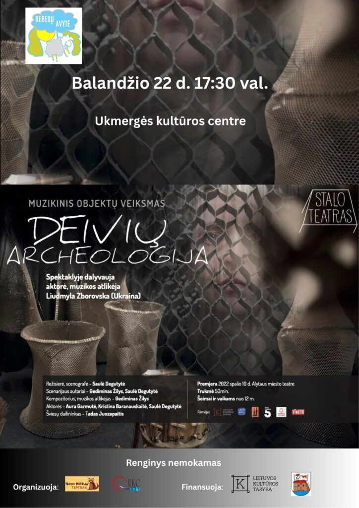 Etnologės, archeologės Marijos Gimbutienės idėjų įkvėptas muzikinis objektų teatro spektaklis „Deivių archeologija“ panardins žiūrovą į muzikinį sapną, kuriame iš priešistorinių laikų gelmės viena po kitos į rampos šviesą išnirs senovės baltų pasaulio deivės ir būtybės – Žemyna, Austėja, Laima, Veliona, Giltinė, Vėlijūtė. Per ilgus amžius jų vardai apaugo mitais, dainomis, šventiniais ritualais, kurių meninę-muzikinę interpretaciją „susapnuoti“ kviečia Stalo teatras.